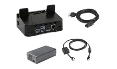 Includes one ET5X 1-Slot Charge/Comm Dock, one Power Supply, one DC Cable, and one AC Line Cord (US).