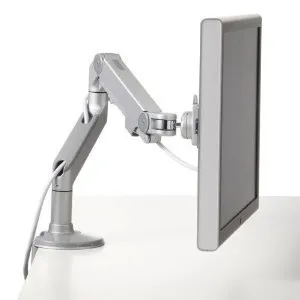 Humanscale M8 Adjustable Articulating Computer Monitor Arm - Two Piece Clamp On Mount with Base - Silver with Gray Trim